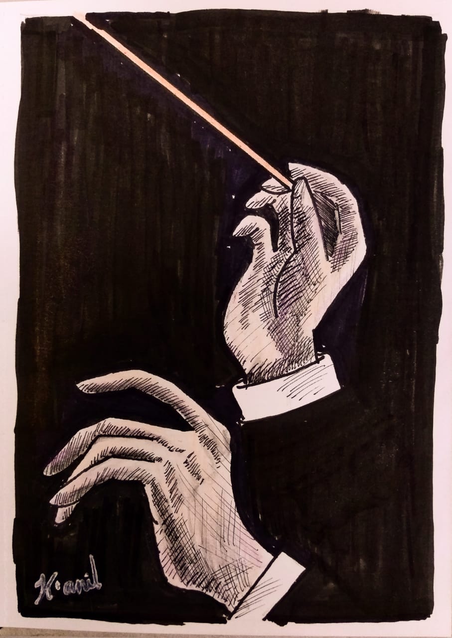 «13 de julio: Día Internacional del Director de Orquesta» es el cartón editorial de Silvestre K’anil.