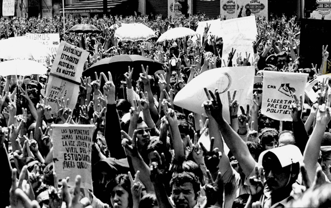 “El 27 de agosto tuve la oportunidad de participar en la marcha, allá en el Distrito Federal, me fui en tren, me acompañó mi hermano. Mi primo estudiaba allá y él nos llevó a la marcha. Había muchísima gente. Simbolizaba la unión nacional, sobre todo porque participaban las mujeres, participaban las mamás de los estudiantes presos. La creatividad en el movimiento era impresionante y yo me traje miles de volantes”, contó Carlos, y siguió: “El 2 de septiembre era el regreso a clases y ese día yo me puse a repartir todos los volantes. Un amigo me dijo ‘Sepúlveda, ¿no te da miedo hacer eso? Luego van a venir Los Gorilas (grupo de porros de la FEG)’, pero yo le dije ‘¿por qué voy a tener miedo?, si yo estoy repartiendo información para que la gente se informe de lo que está pasando, que no vivamos a oscuras, yo me sentía muy seguro’ y seguí repartiendo todos los que me traje de la marcha”.