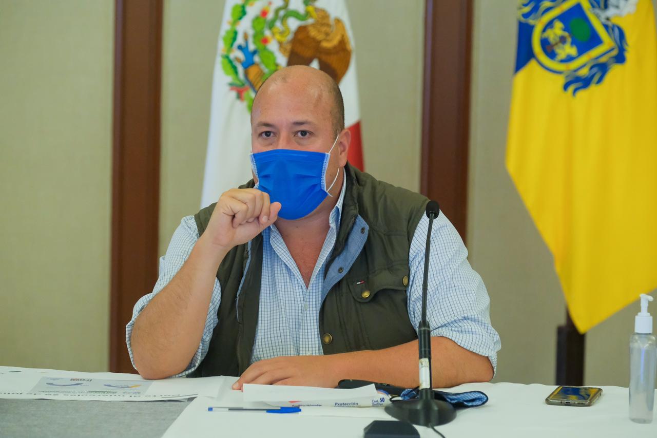 En la mesa donde participan representantes de los municipios, el Rector de la Universidad de Guadalajara, así como representantes de la mesa de Educación, el mandatario jalisciense aclaró que el domingo se presentará la actualización del semáforo con los dos indicadores (ocupación hospitalaria y tasa de incidencia – casos por millón de habitantes) que se consideran para el botón de emergencia.
