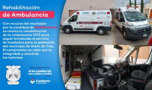 Esta rehabilitación tuvo un costo aproximado de 46 mil 600 pesos, erogado de las arcas municipales. La restauración fue hecha con el fin de brindar una mejor atención a la población tulense para traslados fuera del municipio. Por: Ángeles Claustro. Unión de