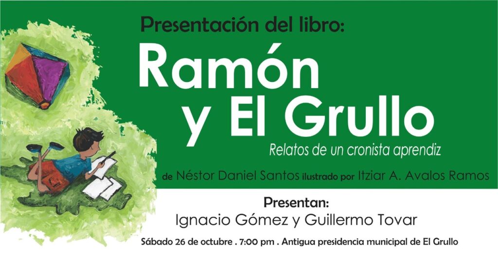 Este sábado 26 de octubre se realizará la presentación del libro Ramón y El Grullo: relatos de un cronista aprendiz de Néstor Daniel Santos e ilustraciones de Itziar A. Ávalos Ramos. El evento tendrá lugar en la Antigua Presidencia Municipal de El
