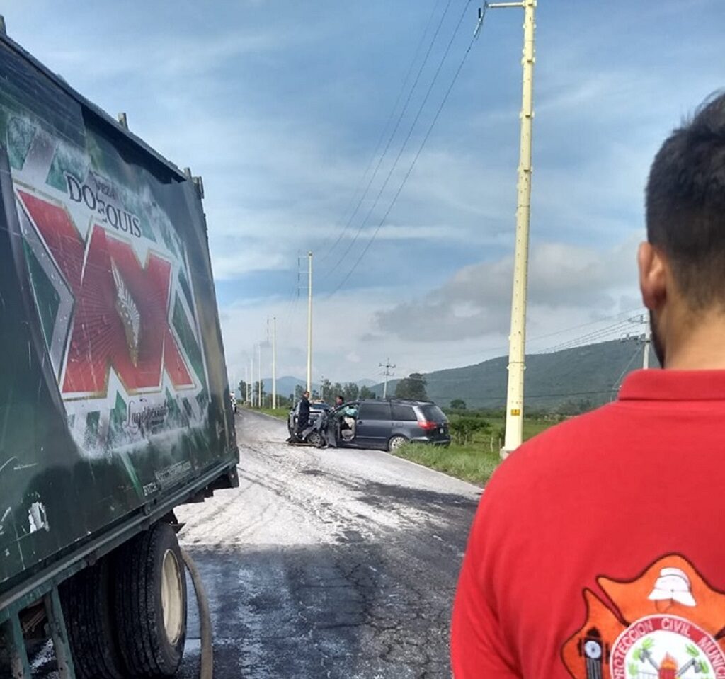 Un vehículo que transportaba bebidas alcohólicas chocó contra una camioneta en el kilómetro 108 de la carretera federal 80 Guadalajara – Barra de Navidad, a la altura de Unión de Tula.