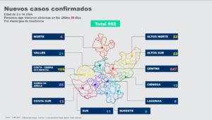 La Secretaría de Salud Jalisco dio a conocer la estadística de niños de 3 a 14 años de edad, contagiados por COVID-19 en cada una de las regiones del estado. En total, su cifra oficial refiere que hay 952 niños enfermos por