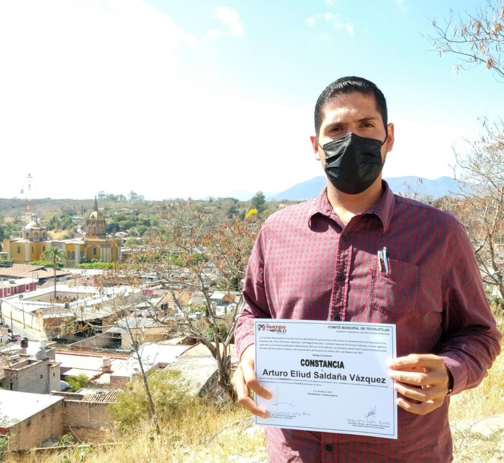 La Comisión de Procesos Internos del Partido Revolucionario Institucional (PRI) otorgaron este viernes -12 de febrero- a Arturo Eliud Saldaña Vázquez, la constancia que lo acredita como candidato a la presidencia municipal de Tecolotlán por el principio de mayoría relativa.