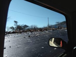 A un camión Torton que transportaba cerveza se le reventaron los cinchos, el peso hizo que se ladeara y se le tiraran aproximadamente 80 cartones de cerveza . El accidente ocurrió a la altura de la curva conocida como "La Virgencita" en