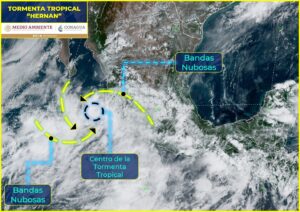 La Unidad Estatal de Protección Civil y Bomberos Jalisco (UEPCBJ) informó que, hasta el último corte de las 13:00 horas, el centro de la Tormenta Tropical "Hernan" se localiza a 120 kilómetros al suroeste de Cabo Corrientes, en la costa sur de