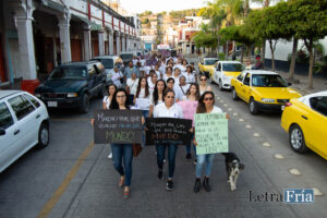 Vestidas de blanco, con pañuelos morados –símbolo de la lucha feminista- y en silencio por las mujeres que han sido asesinadas, 76 grullenses salieron a las calles para exigir una vida libre de violencia y que paren los feminicidios, que cada día quitan la vida a diez mujeres