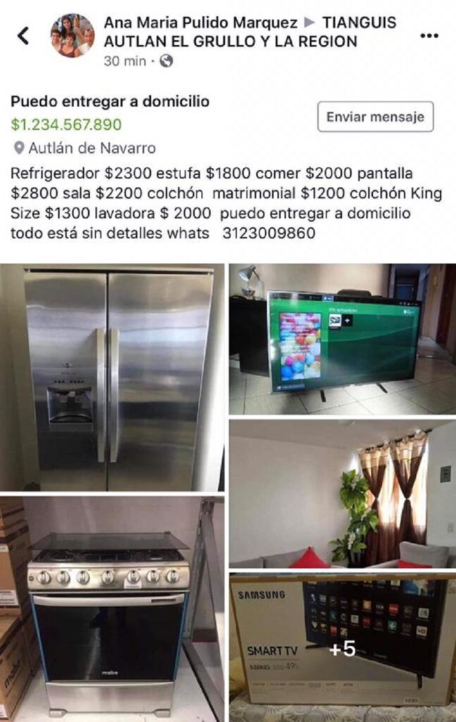 Personas que fueron víctimas denuncian una nueva modalidad de fraude; los delincuentes publican en grupos de Facebook como “Tianguis Autlán, El Grullo y la Región”, la venta de productos a bajo costo, entre ellos refrigeradores, estufas, colchones, salas y pantallas.