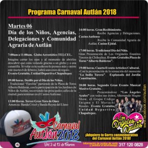 Hoy es el cuarto día del Carnaval Autlán 2018 y el día está dedicado a los niños. Por la noche se vivirá el segundo Evento Gratuito con el concierto de Los Ángeles Azules.