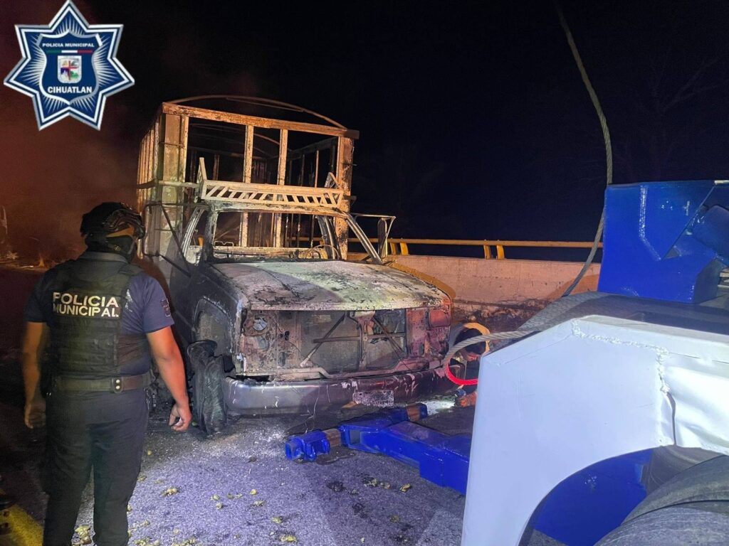 El municipio de Cihuatlán activó alrededor de las 10:00 de la mañana un Operativo Especial para retirar los ocho vehículos que fueron incendiados durante la jornada violenta del domingo y liberar completamente sus principales vías de comunicación.