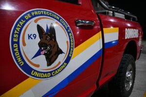 Cinco unidades, una célula USAR de Búsqueda y Rescate Urbano de la Unidad Estatal de Protección Civil y Bomberos de Jalisco (UEPCBJ) y la unidad canina K9 trabajan en la zona del derrumbe en la carretera federal 80, Guadalajara - Barra de
