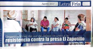 Solidaridad en la resistencia contra la construcción de la presa El Zapotillo es lo que ofrecieron la Alianza Ciudadana para el Desarrollo Regional De Jalisco Alternativo-Sur(ACDRA-SURJA) y la Unión Campesina Zapatista del Sur(UCAZS) mediante un comunicado conjunto dirigido a los habitantes de