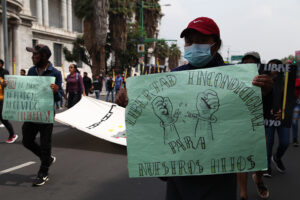 Estudiantes de la normal rural de Mactumactzá, en Chiapas, marcharon en la Ciudad de México para exigir que se respete el modelo de las normales rurales y que el gobierno retire los cargos contra sus compañeras y compañeros detenidos y liberados bajo