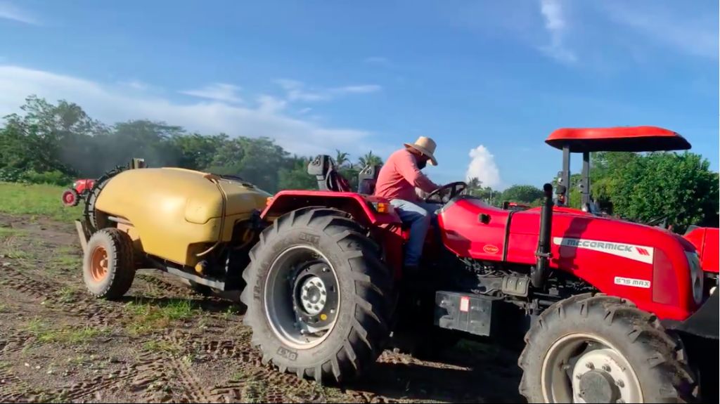Productores agrícolas prestaron sus tractores y rociadores en el municipio de Cihuatlán para colaborar en la jornada de sanitización municipal, con la finalidad de desinfectar espacios públicos, calles y lugares donde pudo haber contagios de COVID-19. Por: Darinka Rodríguez Cihuatlán, Jalisco. 10