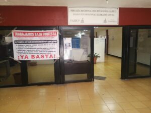 Elementos de la Fiscalía General del Estado (FGE) de Jalisco expusieron este viernes a través de la colocación de lonas, que no se les ha liberado el pago del estímulo correspondiente al mes de mayo, al que tienen derecho por haber aprobado