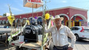 Don Clicerio Carrillo suma más de 30 años jalando con su caballo el carretón del pipero; Un elemento importante en la celebración del Carnaval de Autlán que acompañado de la chirimía y las bandas anuncia la llegada de esta tradicional fiesta.