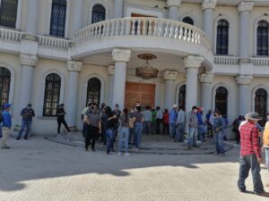 Este miércoles, trabajadores del gobierno municipal de El Grullo realizan una manifestación a las afueras de la presidencia para exigir que la administración pública encabezada por Mónica Marín Buenrostro, cubra el “bono del servidor público” el cual debió pagarse el 28
