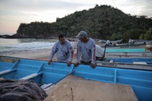 25 familias pesqueras de La Huerta recibieron equipo para la captura y manejo de productos marinos a través de la Secretaría de Agricultura y Desarrollo Rural (SADER Jalisco), el 10 de marzo en la playa Careyitos.