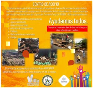 Por: Esther Armenta Villa Purificación, Jalisco. 30 de septiembre de 2019. (LF).- El Gobierno Municipal de Villa Purificación solicitó en su cuenta oficial de Facebook, la donación de víveres para las localidades del municipio afectadas por la Depresión Tropical «Narda». Entre los