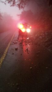 El kilómetro 180 de la carretera Autlán – Casimiro registra derrumbe que ya es atendido por elementos de Protección Civil y Bomberos de Casimiro Castillo.