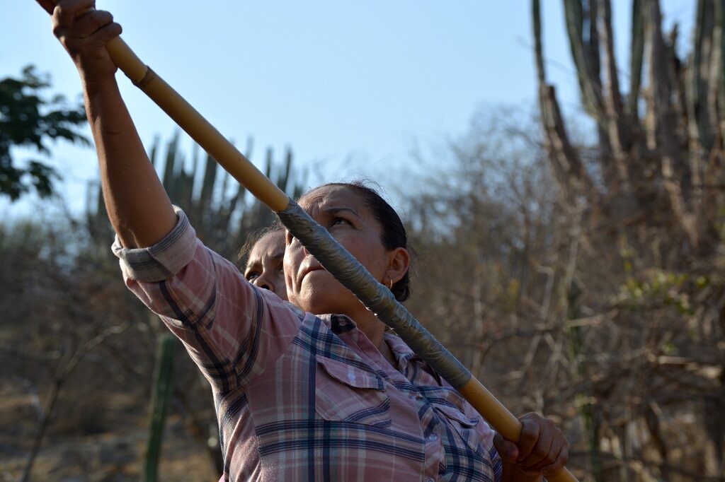 Ya en el suelo continúan sangrando o llorando, depende quién las mire. Para Leslie las pitayas lloran cuando son arrancadas de los brazos de la cactácea que les da la vida; sus lágrimas son producidas por el gancho de metal que penetra