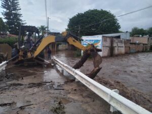 La lluvia intensa en el municipio ocasionó la creciente del río “Tecolotlán", el cual a su paso se llevó troncos de madera que obstruían el paso del agua.
