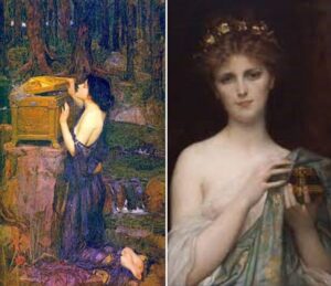 Creación de Pandora: Pandora fue la primera mujer creada por los dioses griegos, específicamente por Hefestos, a instancias de Zeus. Cada dios le otorgó un don, lo que la convirtió en una figura hermosa pero también peligrosa.