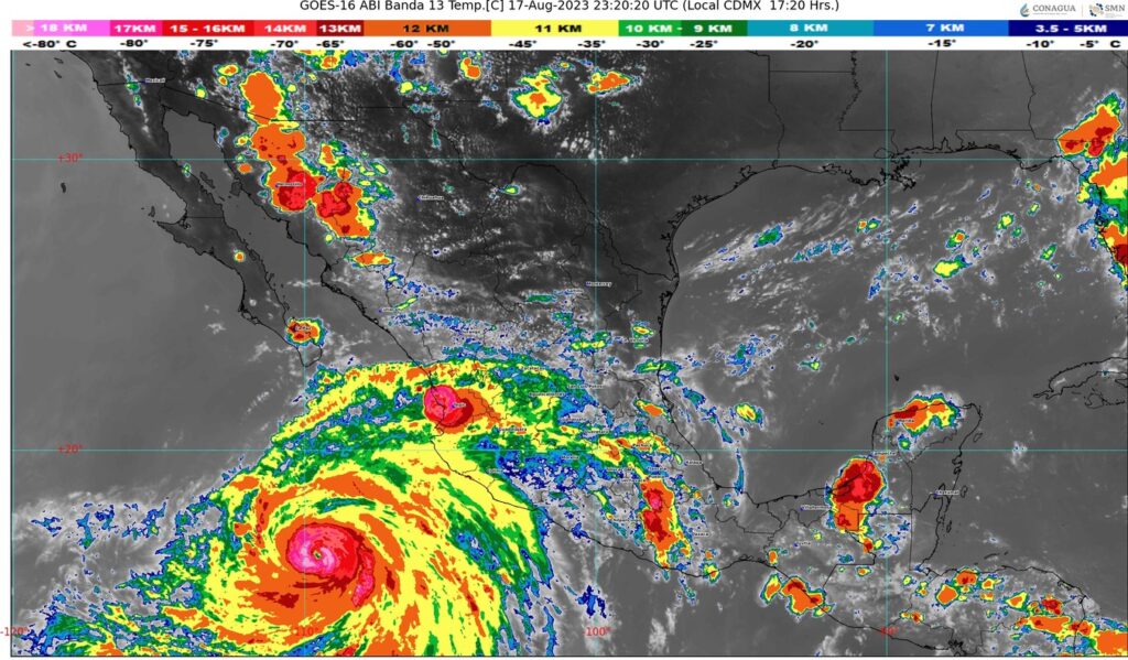 La Comisión Nacional del Agua (Conagua) informó que a las 16 horas de este jueves, el Huracán Hilary ya es categoría 2 y está frente a costas de Jalisco.