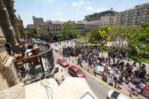 A media manifestación, el gobernador Pablo Lemus Navarro apareció, acompañado de la rectora Karla Planter, en el balcón de palacio de gobierno y decidió reunirse con la rectora y con la presidenta de la FEU, Zoé García, para revisar el tema.