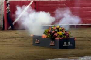 Por: Lauro Rodríguez Tecolotlán, Jalisco. 11 de febrero de 2023.- (Letra Fría) ‘¡Y decimos: 1, 2, 3, pendemos la mecha’. Así fue como un ataud con el mal humor de los tecolotlenses se quemó en la Plaza de Toros de Tecolotlán. Así