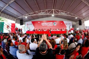 Durante su mensaje, Toño Padilla, dirigente del PRI Jalisco, instó a la militancia a seguir adelante, dijo que a partir de la asamblea el partido se reagrupa y reflexiona sobre el proceso pasado.