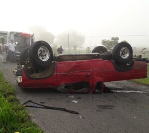 Un accidente cobró la vida de una mujer y dejó lesionadas a cinco personas. Se trató de una volcadura que ocurrió en el ingreso al municipio Cuautitlán, este domingo aproximadamente a las 07:45 horas.