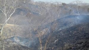 Un fuerte incendio se registró en un predio ubicado a la altura del kilómetro 81+800 en la carretera federal 80 Guadalajara – Barra de Navidad, en los límites de Tecolotlán y Juchitlán.