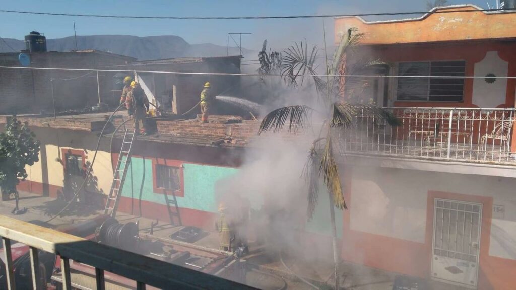 El fuego consumió los muebles de una vivienda, provocó el colapso del techo y dañó parte de su estructura. El incendio fue provocado por una veladora.