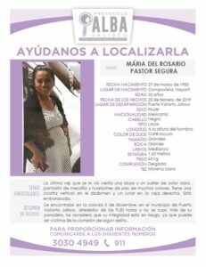 El Protocolo Alba solicita tu apoyo para la búsqueda y pronta localización de MARÍA DEL ROSARIO PASTOR SEGURA, de 35 años de edad.
