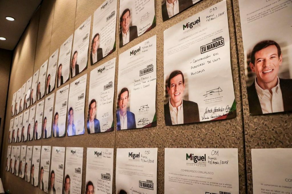 El candidato a Gobernador de Jalisco por el Partido Revolucionario Institucional, Miguel Castro Reynoso, ha firmado más de 300 compromisos con ciudadanos de los 125 municipios del estado para atender las problemáticas y necesidades de las comunidades y generarles mejores condiciones de