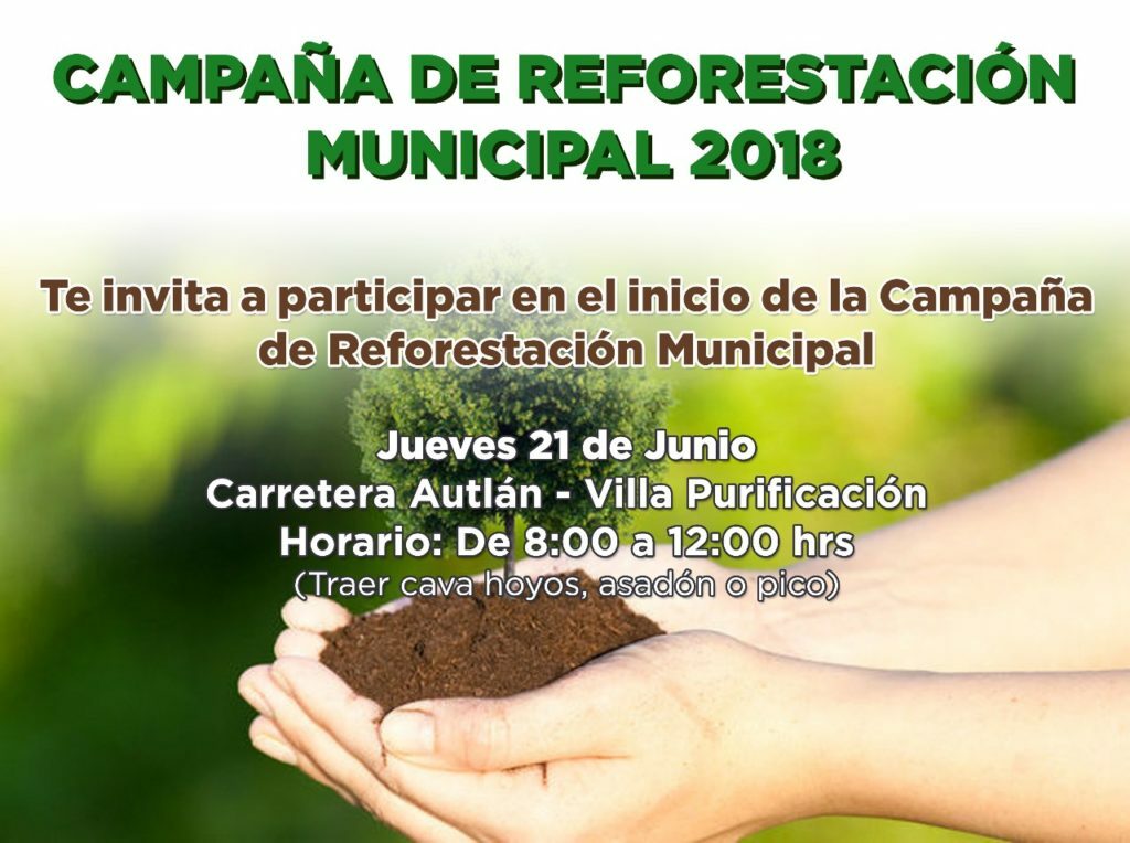 Este jueves 21 de junio se llevará a cabo una "Campaña de reforestación municipal" en Autlán de Navarro, invitan a la población autlense a participar.