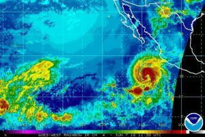 La primera tormenta tropical de la temporada de huracanes del Pacífico Oriental sigue fortaleciéndose hoy, pero está avanzando hacia mar abierto y los meteorólogos informaron que no representa una amenaza para tierra firme.