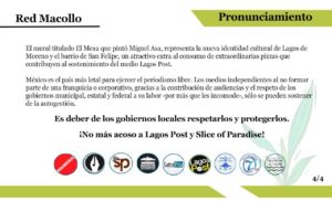 Los 9 medios de comunicación y periodismo independiente en Jalisco que conformamos esta red, expresamos rechazo a las recientes actuaciones de acoso judicial por parte del ayuntamiento de Lagos de Moreno contra la directora del medio digital Lagos Post.