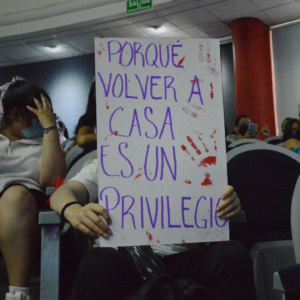 En un espacio autogestionado se movilizaron estudiantes pertenecientes a la comunidad de la Universidad de Guadalajara para exigir mayor seguridad en sus centros educativos, afuera de la Rectoría del Centro de Ciencias de la Salud.