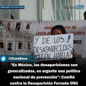 Del 15 al 26 de noviembre de 2021, una delegación de cuatro miembros del Comité contra las Desapariciones Forzadas (CED) de la ONU visitó 13 estados para conocer la situación real de las desapariciones en el país. Su conclusión es contundente: “En