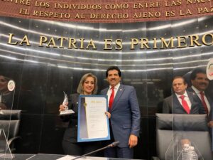 La presidenta de Unión de Tvla recibió un reconocimiento por haber sido reelecta como gobernante de su municipio. La entrega del galardón ocurrió el tres de diciembre durante la Cumbre Mundial de Municipalistas 2021, celebrada en el Senado de la República.