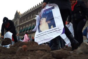 Colectivos de búsqueda de personas desaparecidas de Guanajuato instalaron una representación de fosas frente a Palacio Nacional, desde ahí pidieron al presidente López Obrador mejorar la búsqueda en vida de las personas desaparecidas y una mesa de diálogo para crear un plan