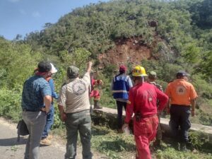 Con el objetivo de descubrir cuál fue la causa que provocó el derrumbe en el kilómetro 243+500 de la carretera federal 80 Guadalajara - Barra de Navidad, geólogos de la Secretaría de Comunicaciones y Transporte realizan un peritaje.