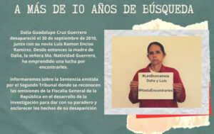 Dalia Guadalupe Cruz Guerrero y Luis Ramón Enciso Ramírez fueron desaparecidos el 30 de septiembre de 2010 en los límites entre Jalisco y Zacatecas, específicamente, en el municipio de Calera. Ese día también viajaban con dos amigos Bernardo Cedano, y Carolina Naranjo.