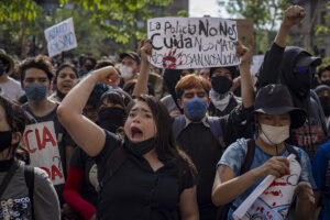 A pesar de que un grupo de hombres encapuchados intentó más de tres veces que la marcha que había iniciado su recorrido de la Minerva no llegará a Palacio de Gobierno, los casi tres mil jóvenes decididos siguieron su caminata por la
