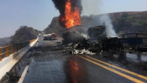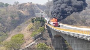 Un accidente vehícular en el Puente de Beltrán, provocó el cierre en ambos sentidos de la autopista Guadalajara-Colima. Los reportes preliminares indican la presencia de un vehículo de carga incendiándose. Al momento se desconoce el grado de afectación y si hay personas