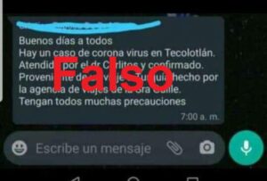 El supuesto caso confirmado de un paciente con coronavirus inició a circular en el municipio de Tecolotlán. Ante la alarma social, la Unidad de Protección Civil y Bombero de Tecolotlán afirmó que no existe la presencia del Covid-19 entre los habitantes.