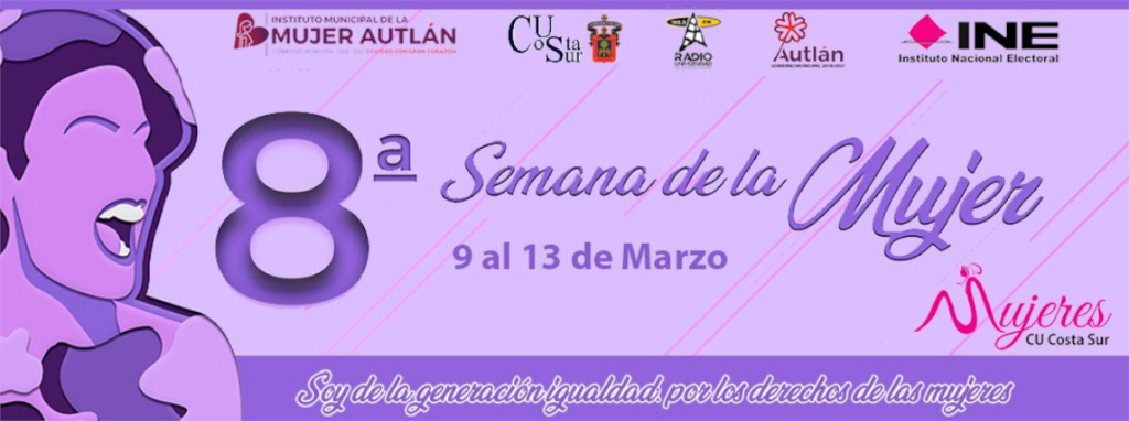 Dentro del marco de la VIII semana de la mujer, que es organizada por el Centro Universitario de la Costa Sur, las actividades se prolongarán durante esta semana. A continuación se presenta el programa a llevarse a cabo durante los días miércoles,