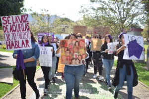 Exhibiendo los nombres de profesores acosadores fue como alumnas del Centro Universitario del Sur, en Ciudad Guzmán, alzaron la voz durante la mañana y tarde de este martes. En punto de las 10:30 horas, alrededor de 60 estudiantes de distintas licenciaturas recorrieron